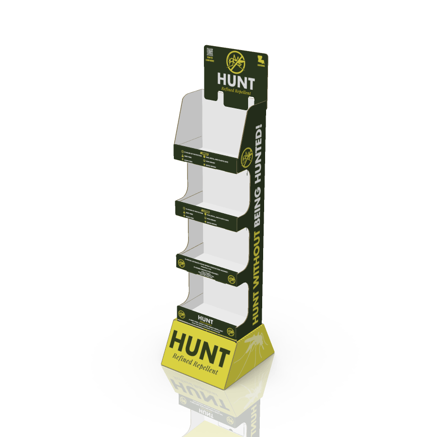 - Designed product packaging and label concepts aligned with HUNT Tech’s clean, outdoor-focused branding.